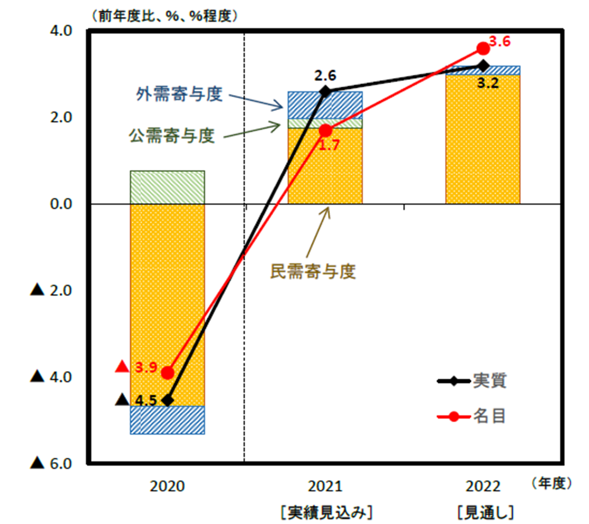 (図表8) GDP成長率と寄与度(政府経済見通し)