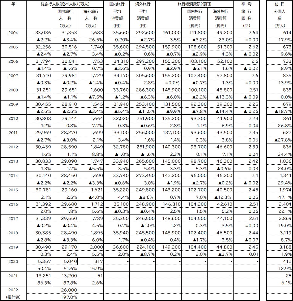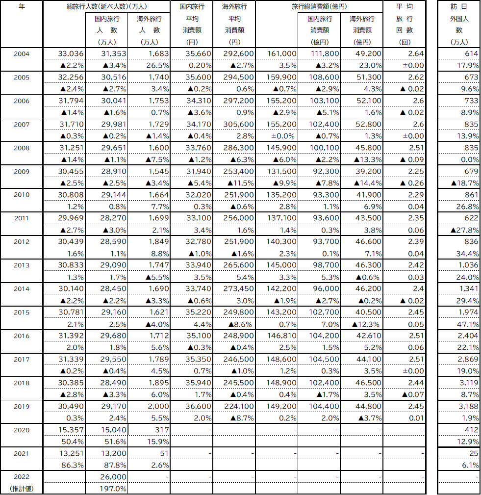 (図表1)2022年 年間旅行動向推計数値 ※国内旅行のみを対象