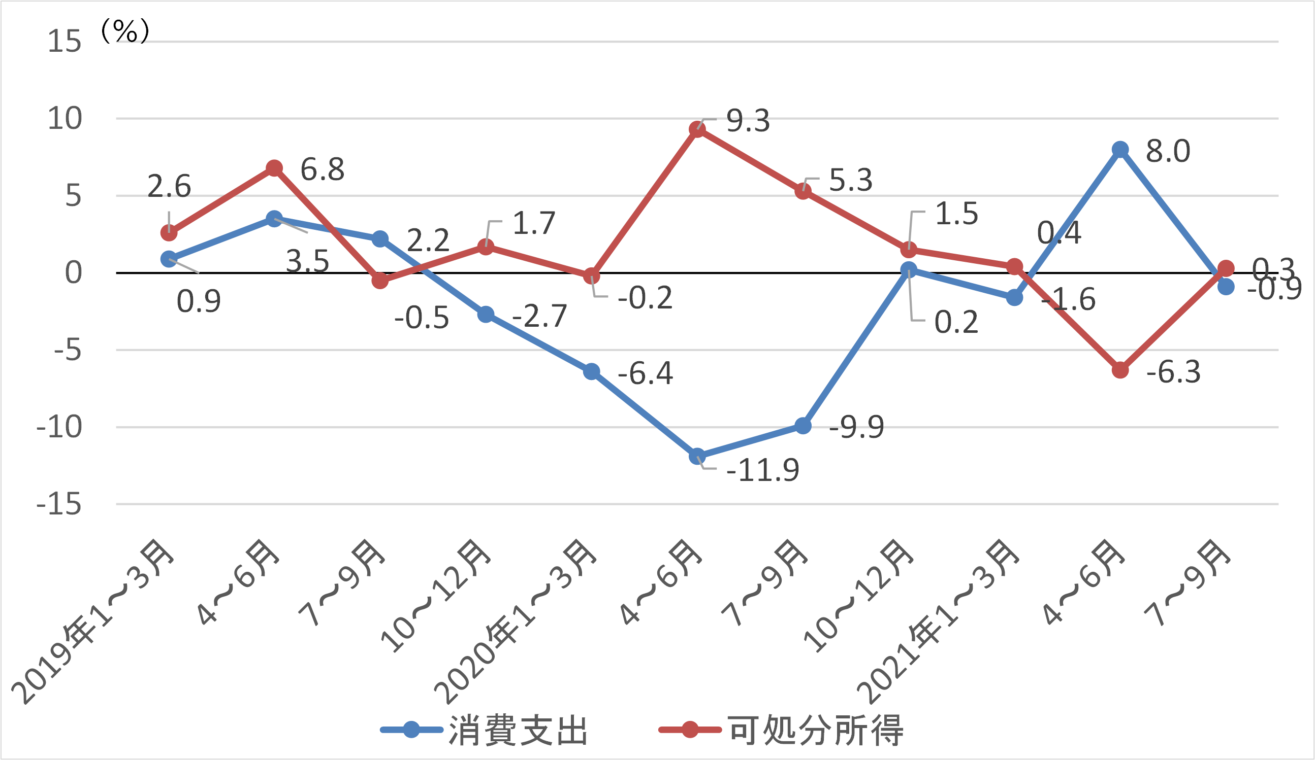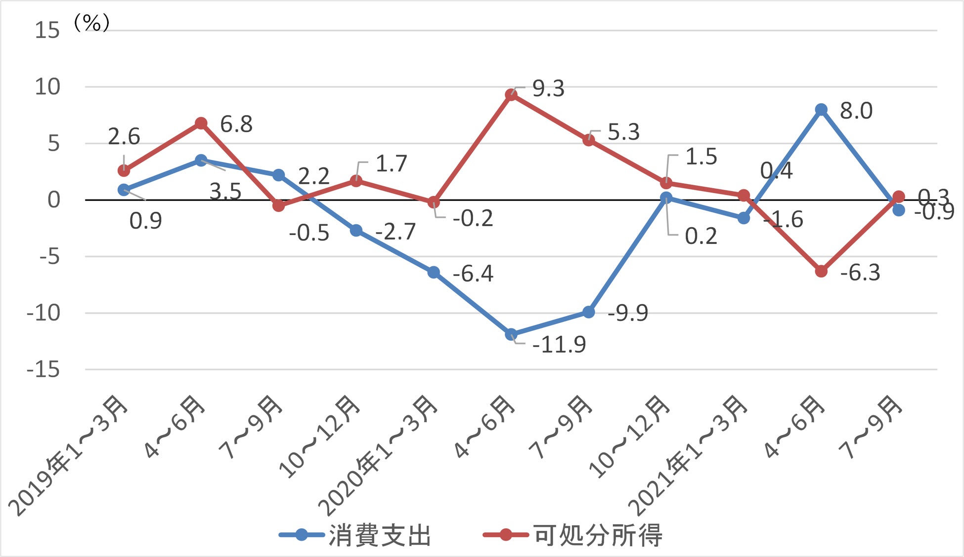 (図表4)可処分所得及び消費支出の対前年同期比推移(四半期別)