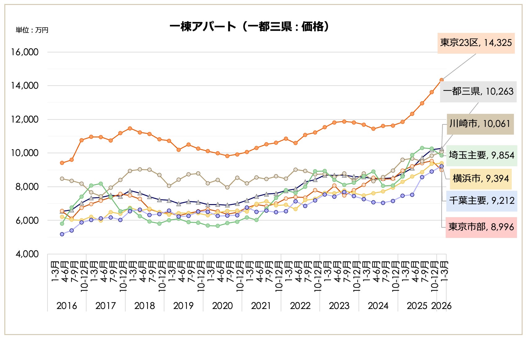 東京23区一棟マンション価格は3億円突破、問い合わせ価格が登録価格を上回る「逆転現象」も発生。「収益物件 市場動向四半期レポート」2026年1月~3月期