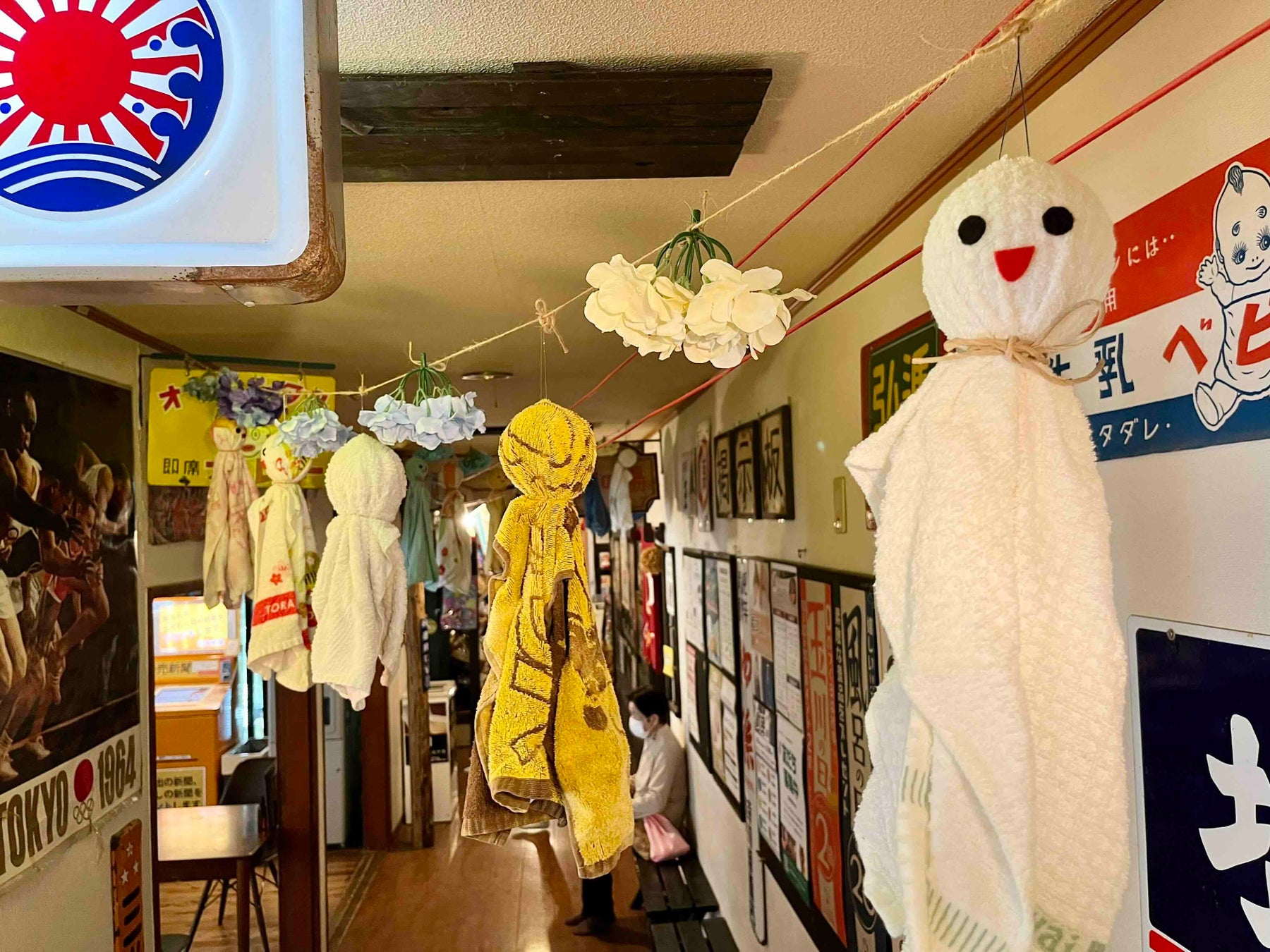 昭和レトロな温泉銭湯 玉川温泉、梅雨入りに合わせて「忘れ物タオルのてるてる坊主」を飾ります