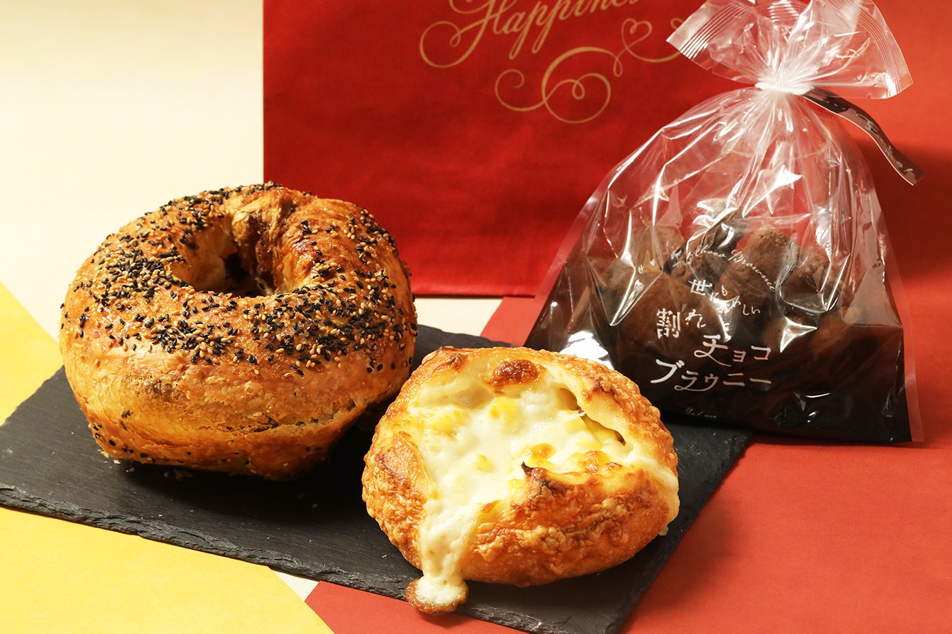 このたび、12月27日(水)より毎年大人気の福袋を数量・期間限定で発売いたします。2024年の福袋は、『ベンケイのあんもちリング』1個、不動の人気惣菜パン『のび〜るとろりんチーズフランスS』1個、姉妹ブランド「ハートブレッドアンティーク」の人気焼き菓子『世にもおいしい割れチョコブラウニー』、さらに、日ごろのご愛顧に感謝をして総額1,800円分の『クーポン付きカレンダー』を1部、合計4点が入った『BENKEI HAPPY BAG※1』を1,200円(税込)でご用意いたしました。『ベンケイのあんもちリング』は、看板商品『ベンケイチョコリング』を装いを新たにリニューアルし、2023年12月26日(火)より新発売。「にっぽん」をお楽しみいただきたい想いより、粒あん、もちフィリング、ごまといった和素材を掛け合わせた自慢の新商品です。