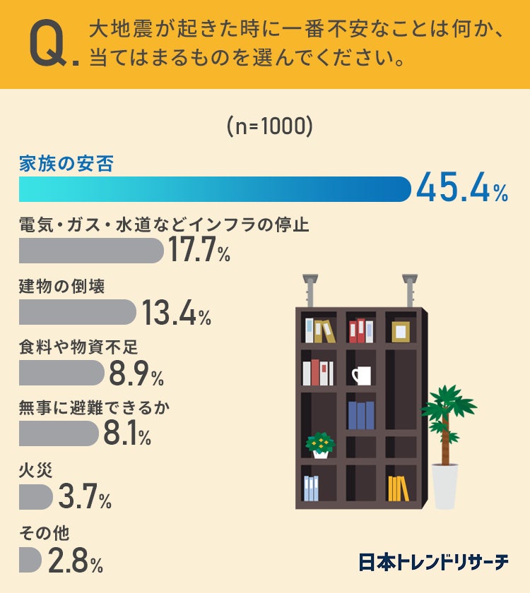 ということで今回は、テレネット株式会社と共同で、全国の男女1000名を対象に「地震対策」についてアンケートを実施しました。