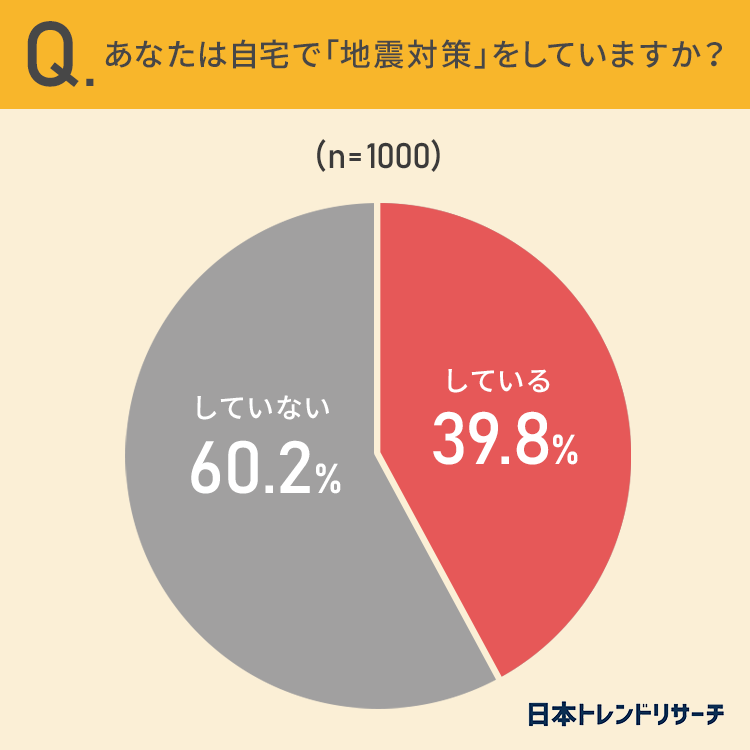 【自宅での地震対策】39.8%が「している」 どんな対策をしている人が多い?