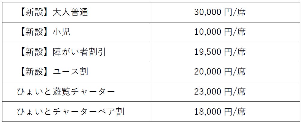 備 考:※「ひょいと遊覧チャーター」「ひょいとチャーターペア割」運賃の購入期限はご出発の