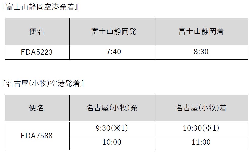 運 航 日:【富士山静岡空港発着】合計8便