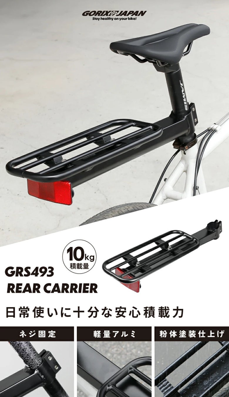 【新商品】【手軽に装着できるシートポスト固定式!!】自転車パーツブランド「GORIX」から、リアキャリア(GRS493)が新発売!!