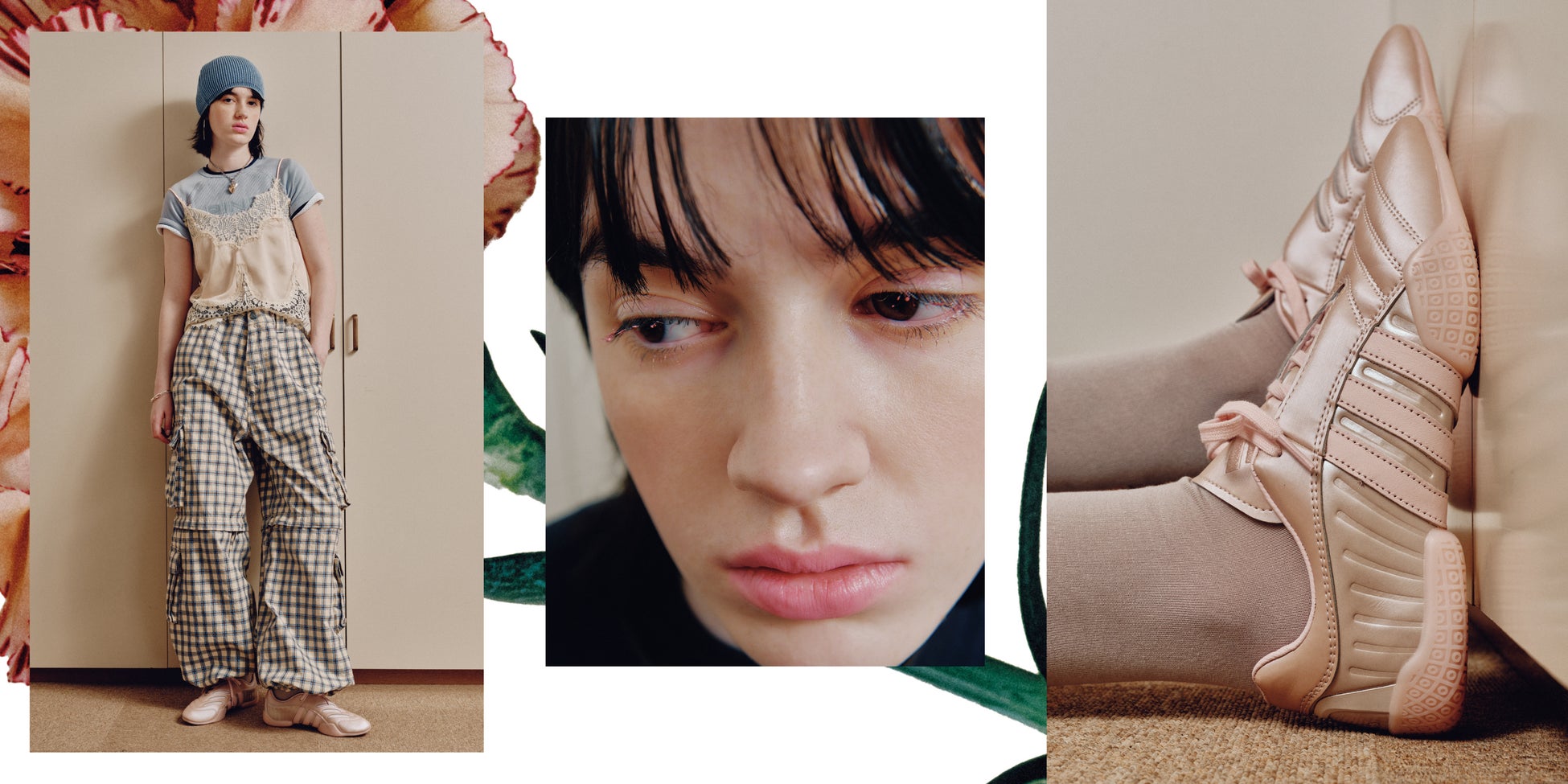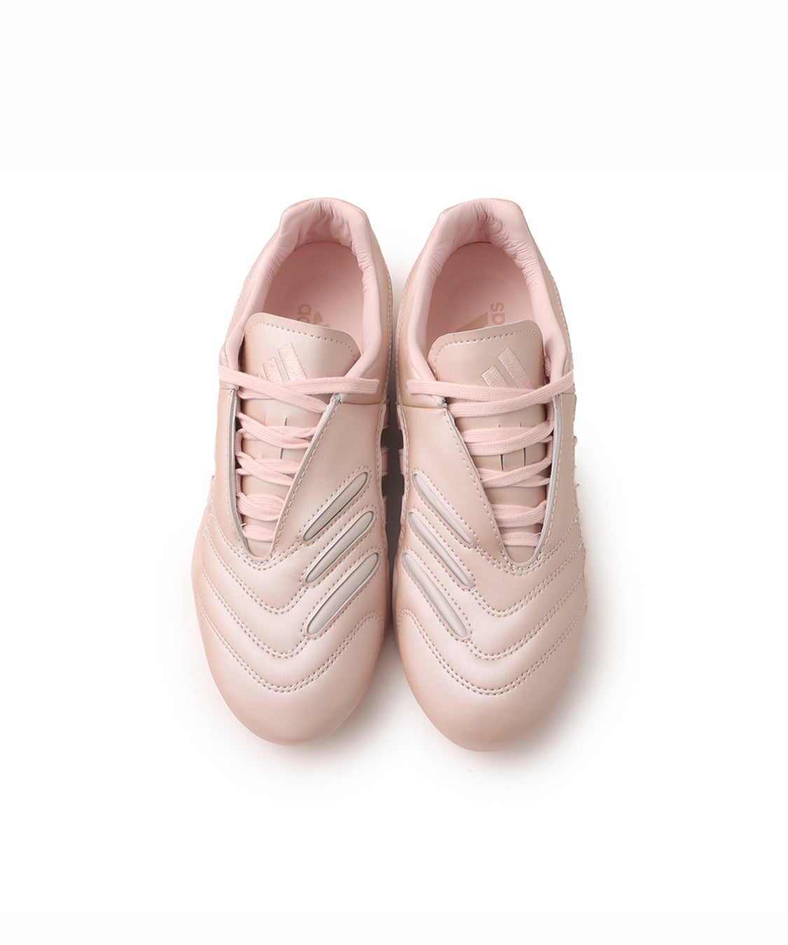 光沢感のあるアッパーがシルエットの美しさを引き立て、アシンメトリーなシューレースがエッジィな個性を演出。つま先の飾りステッチや、アウトソールへと巻きつくように配置されたスリーストライプスは、視覚的なアクセントとして存在感を放ち、洗練されたデザインに加え、ラバーアウトソールはデイリーに頼れるグリップ力を発揮する機能性も備えています。