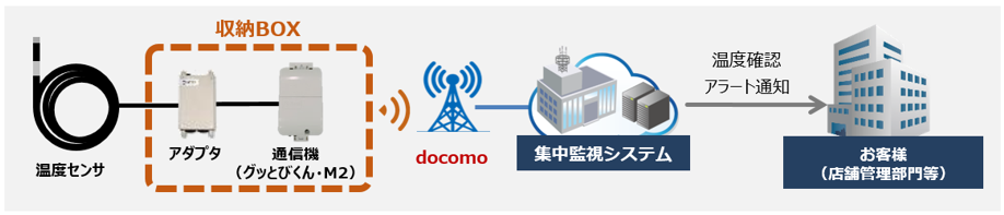NTTテレコンの「水温監視ソリューション」は、市販の温度センサを通信端末に接続することで、NTTテレコンの集中監視システムにてセンサ情報の確認や、アラート通知を受け取れるサービスです。