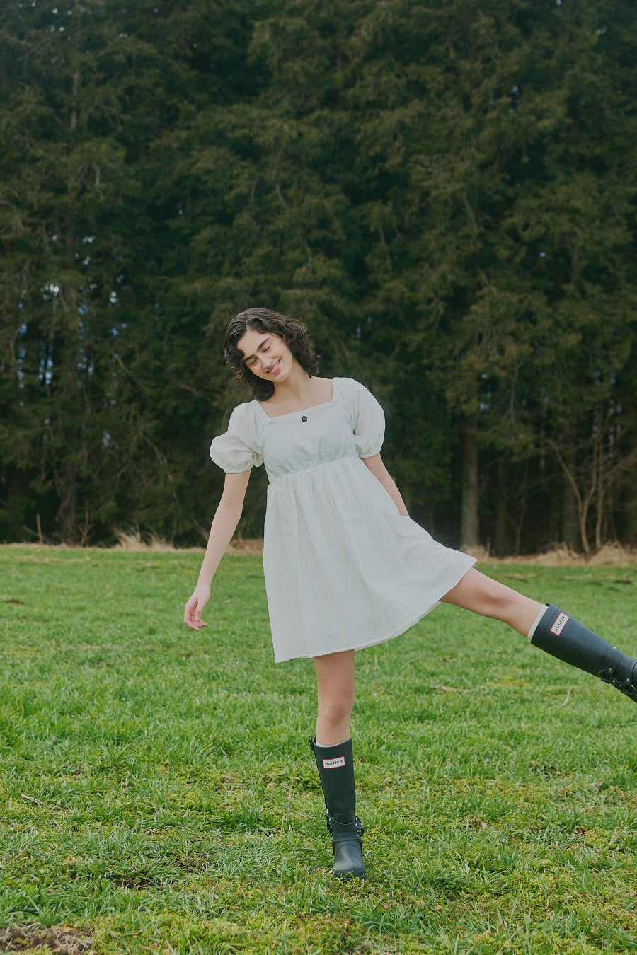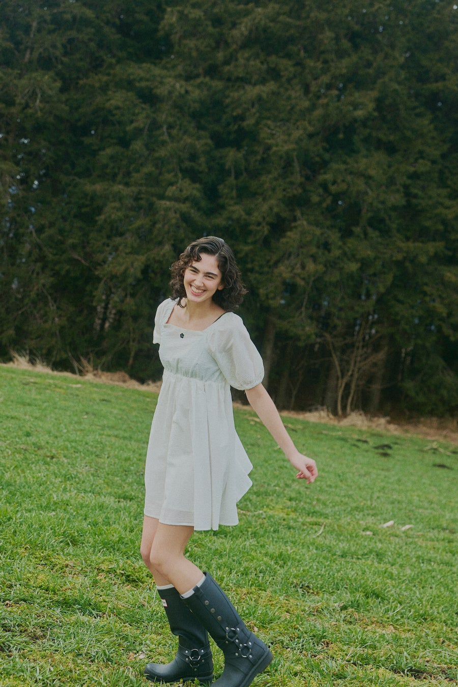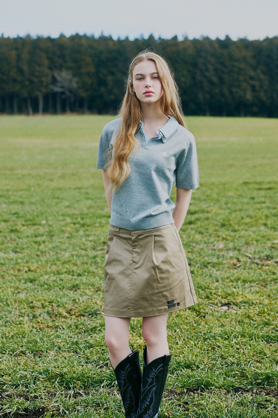 Dickies🄬のらしいチノ素材にMARY QUANTのデイジーを刺繍した特別アイテム。ワークテイストな素材ながらもシルエットや刺繍で愛らしく仕上げたアイテムは、セットアップでも単体でも使える仕様に。トップスは前後で着られる2WAY使用です。