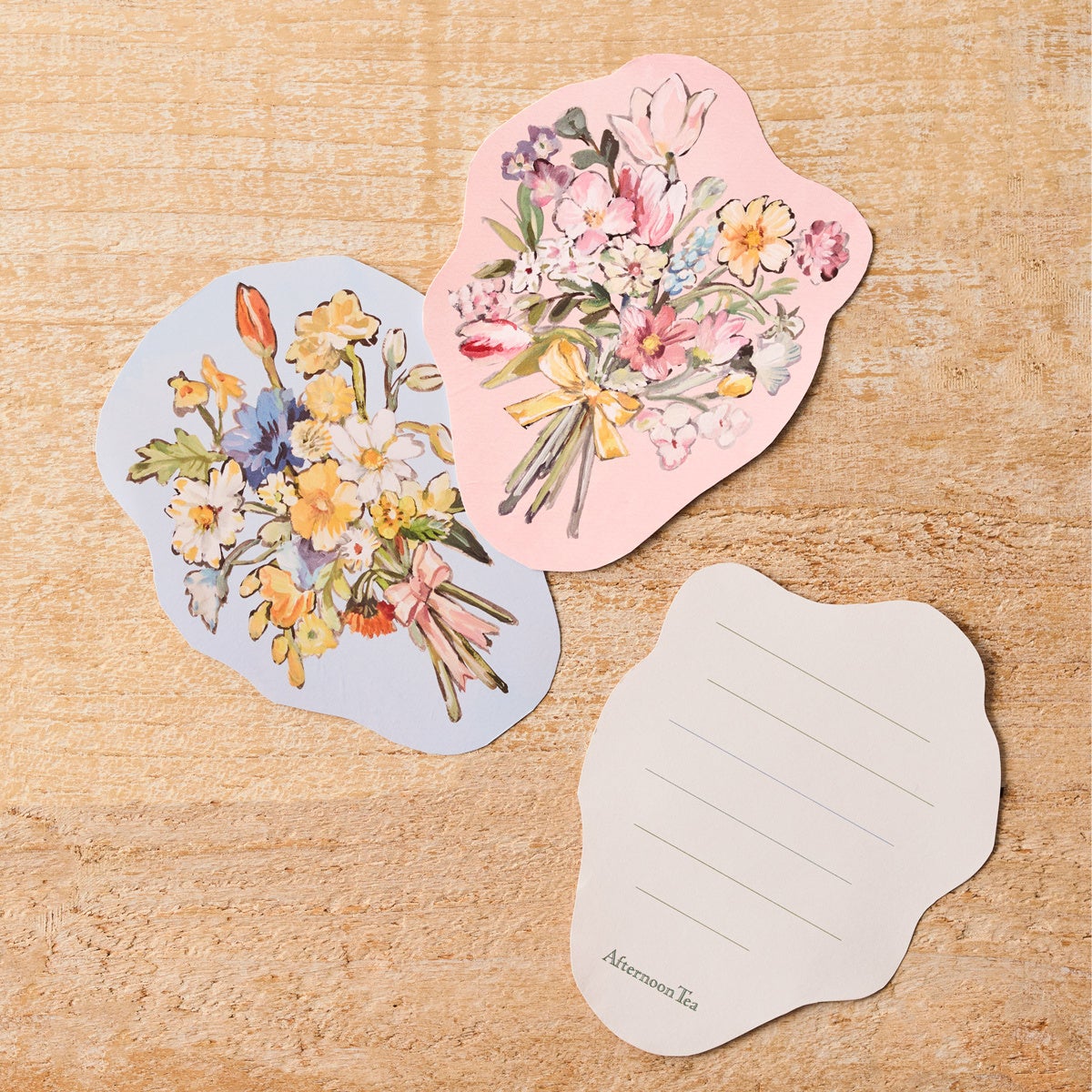 “花束”をデザインしたメッセージカードを数量限定でご用意しました。春限定の紅茶やお菓子をご購入いただくと、商品1点につき1枚を先着でプレゼントします。ラッピングにも使えるスプリングショッパー(有料)とあわせて、春の華やかな雰囲気を提案します。