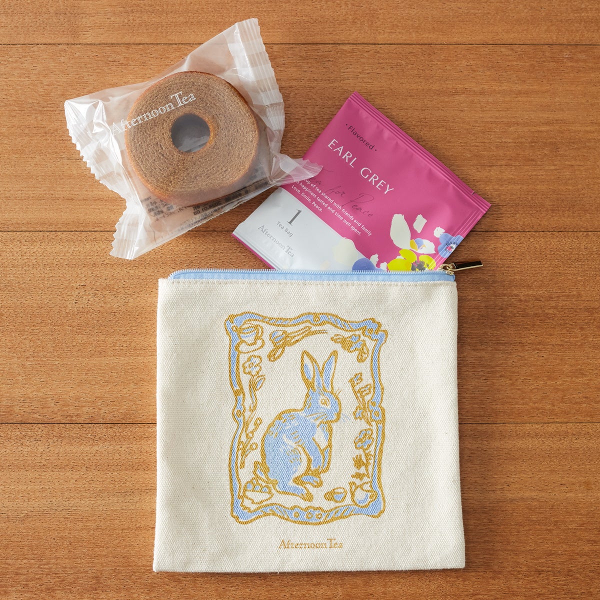 かわいいポーチにアールグレイ味のバウムクーヘンとアールグレイの紅茶が入った、春限定のティータイムセットです。