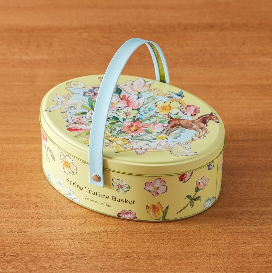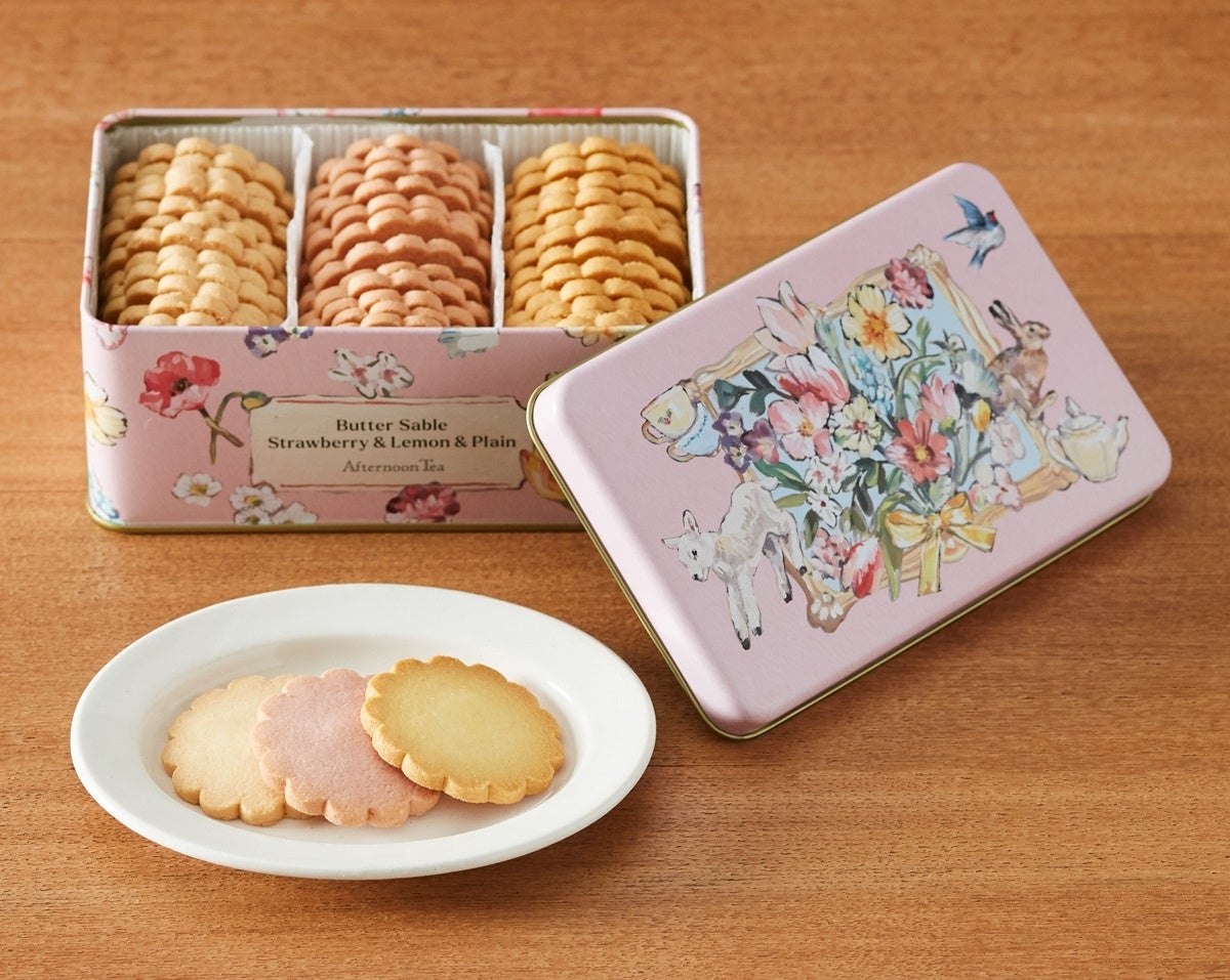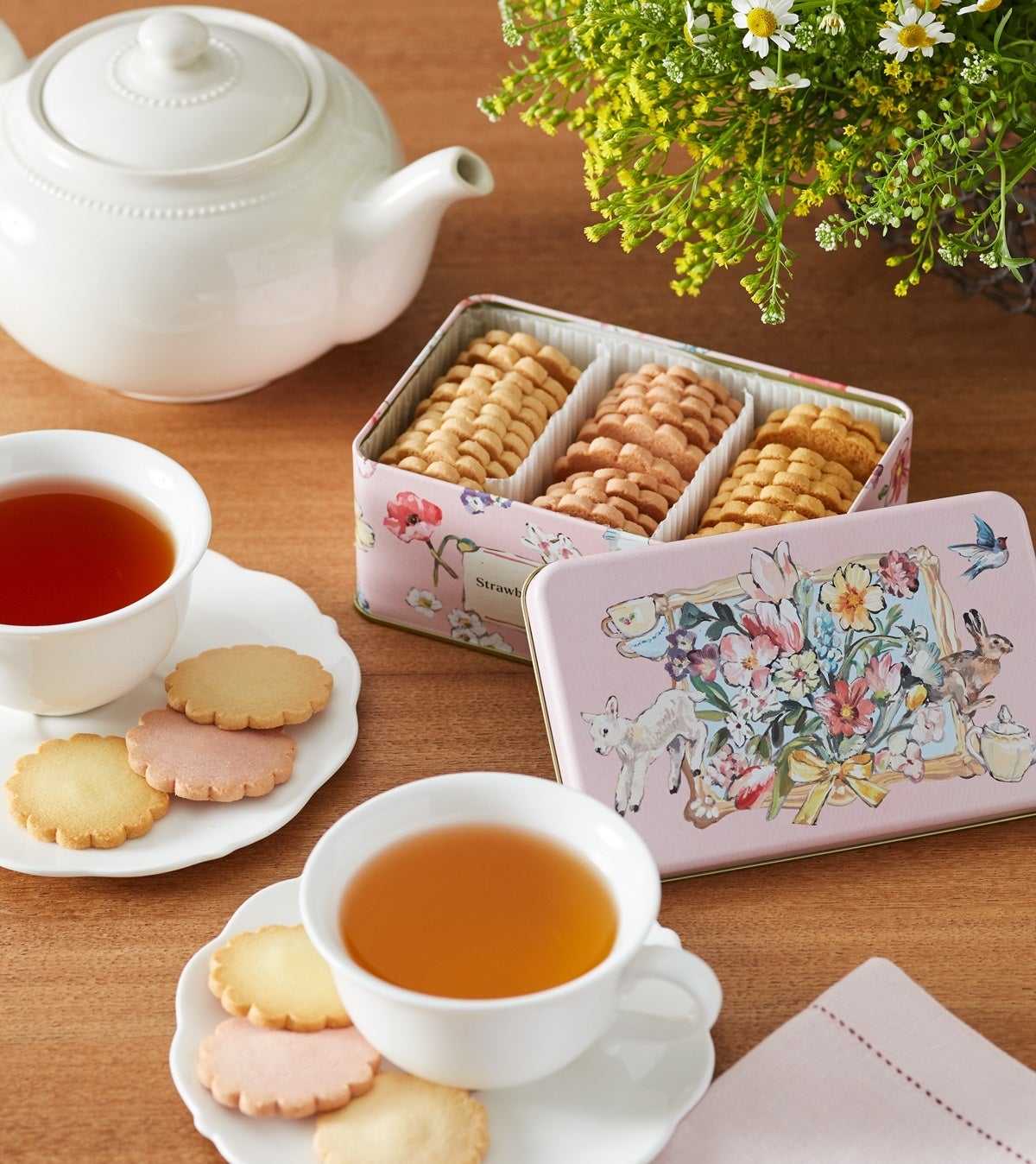 国産バターを使用した「3種のバターサブレ 苺&レモン&プレーン」、桜のフレーバーティーなど3種類のグリーンティーを詰め合わせた「グリーンティーセレクション」、お花見やピクニックにおすすめの「スプリングティータイムバスケット」の3つのギフトは、コラージュ風にあしらった花束のイラストが印象的なデザイン缶入りで、アフターユースも可能。大切な方への贈り物はもちろん、自分へのご褒美にもおすすめです。