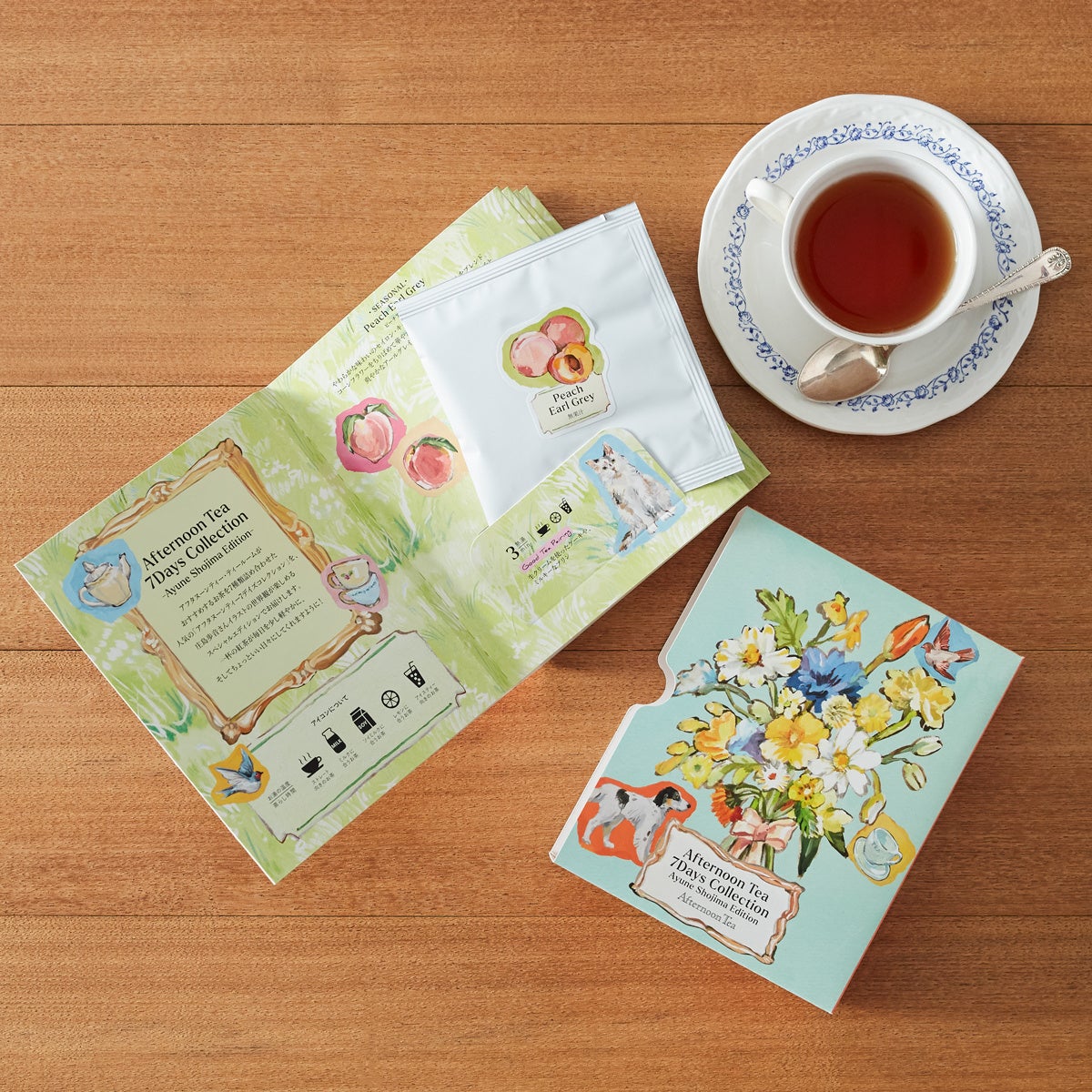 アフタヌーンティー・ティールームがおすすめするお茶を7種類詰め合わせた人気の「アフタヌーンティー7デイズコレクション」を、庄島歩音さんイラストの世界観が楽しめるスペシャルエディションでお届けします。(ティーバッグ3g ×7個)