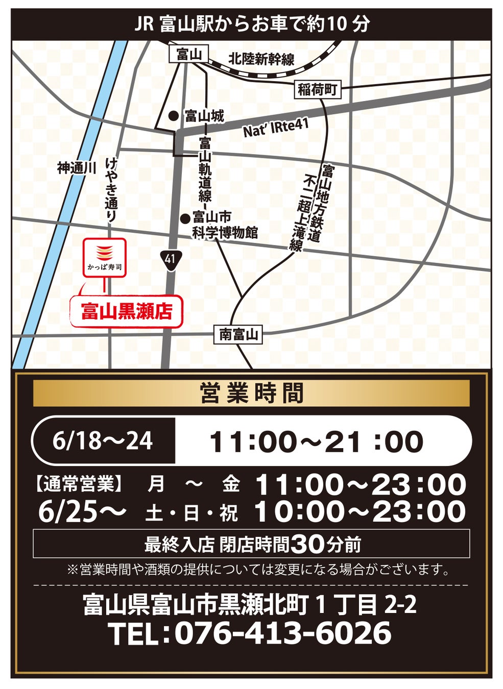 『かっぱ寿司 富山黒瀬店』オープン記念キャンペーン