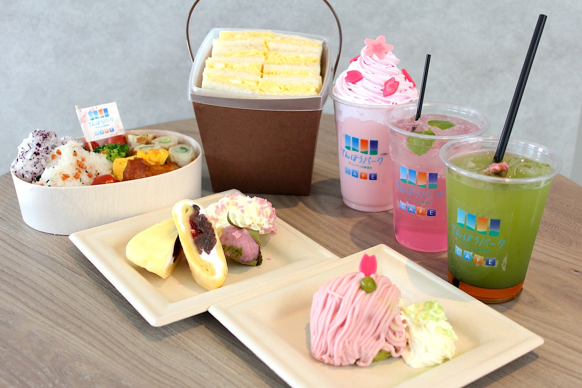 てんぼうパークCAFEでは、お花見を華やかに彩るお花見メニューを期間限定で販売。お花見がさらに楽しくなるお弁当のほか、桜をイメージしたオリジナルドリンク、スイーツをご堪能いただけます。