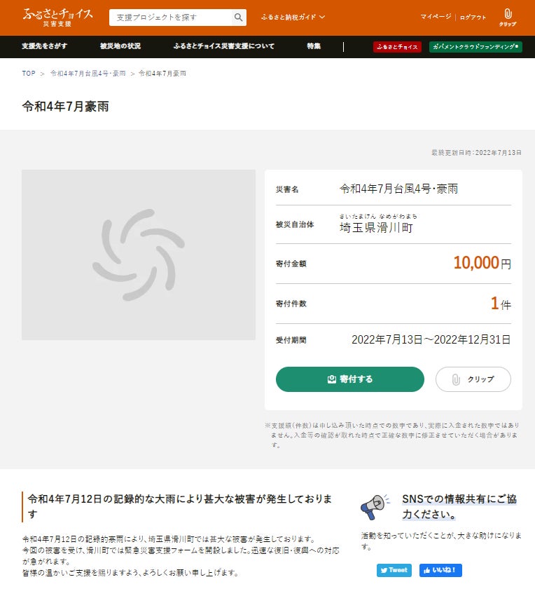 - □■ 「ふるさとチョイス災害支援 令和4年7月豪雨」の概要 ■□