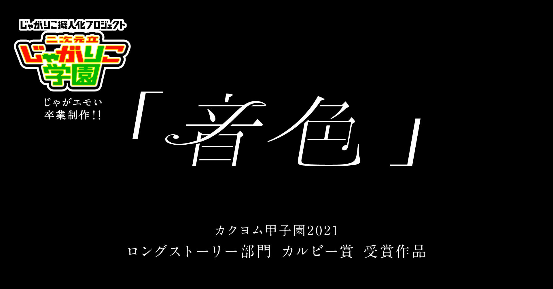 活動3年目で“卒業の年”となる今年度は、「二次元立じゃがりこ学園」の活動を締めくくるのにふさわしい卒業制作として、オリジナルのアニメーション動画を制作する運びとなりました。2021年7月~9月にかけて動画の原作となる「卒業」をテーマにした物語を、高校生を対象とした文学コンテスト“文学はキミの友達。「カクヨム甲子園2021」”にて募集し、多数の応募の中からカルビー賞(ロングストーリー部門)に選ばれた作品「音色」(受賞者:東京都立墨田川高等学校3年 楓椛さん)のストーリーを映像化しました。