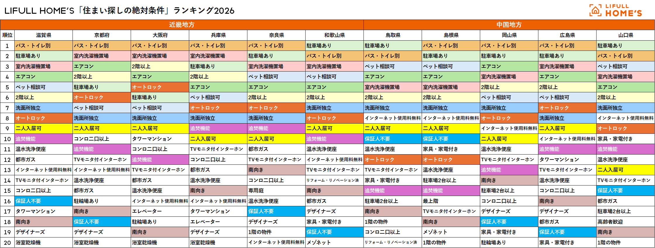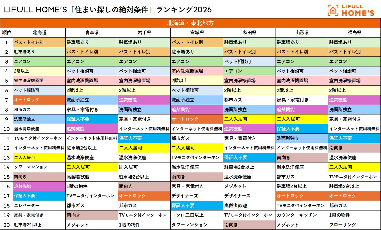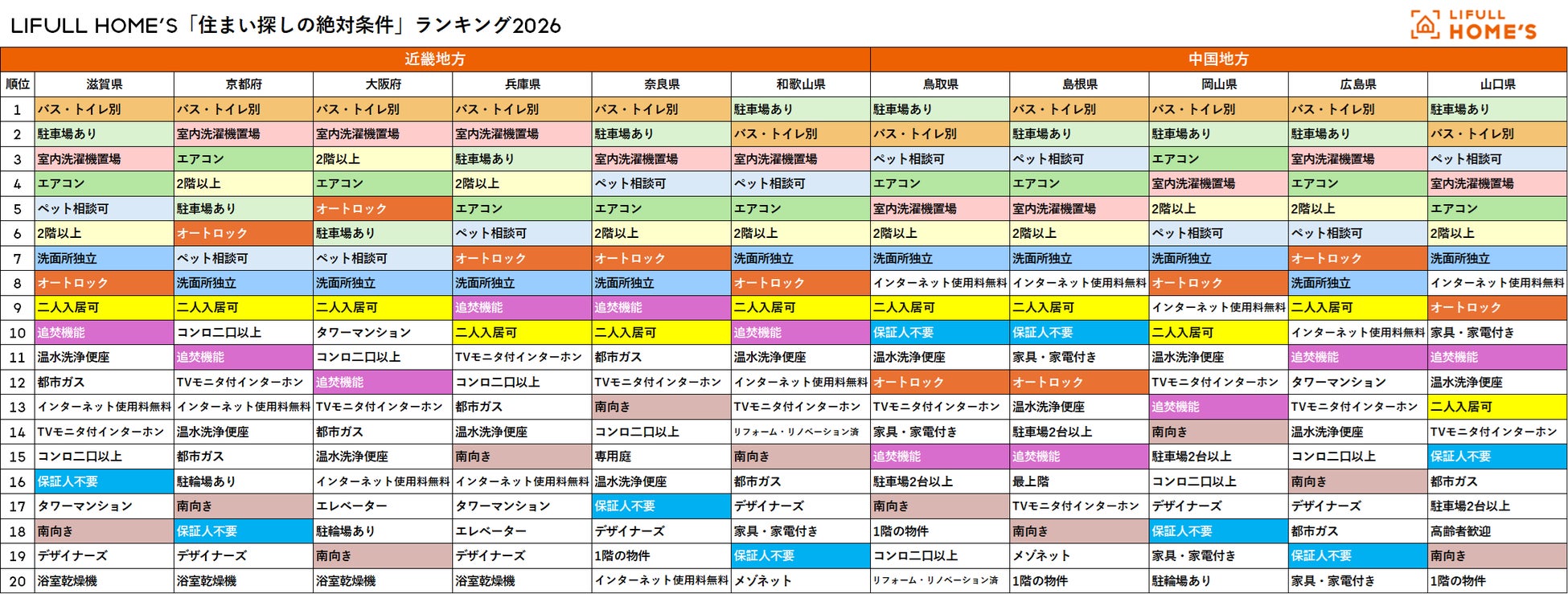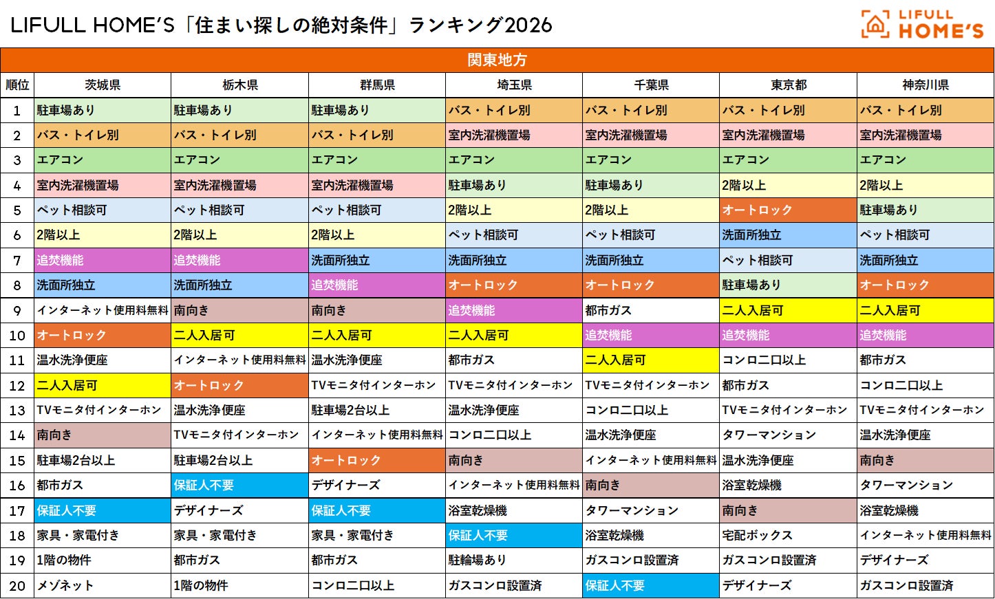 LIFULL HOME'S「住まい探しの絶対条件」総合ランキング2026
