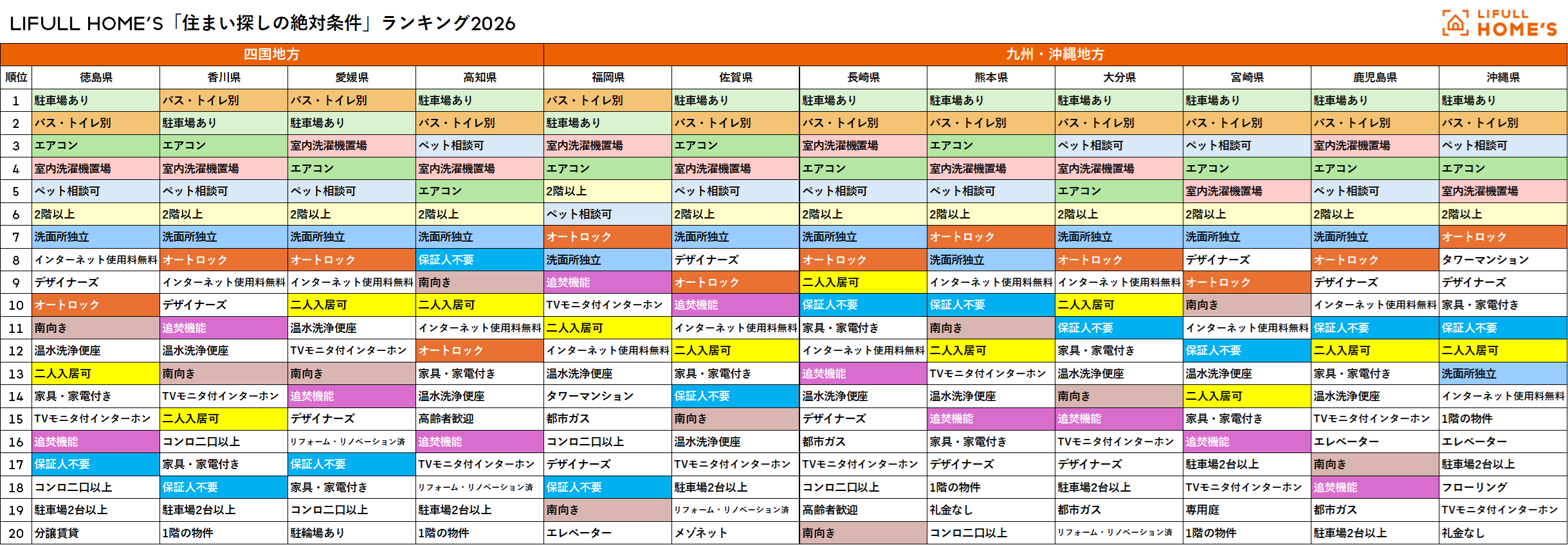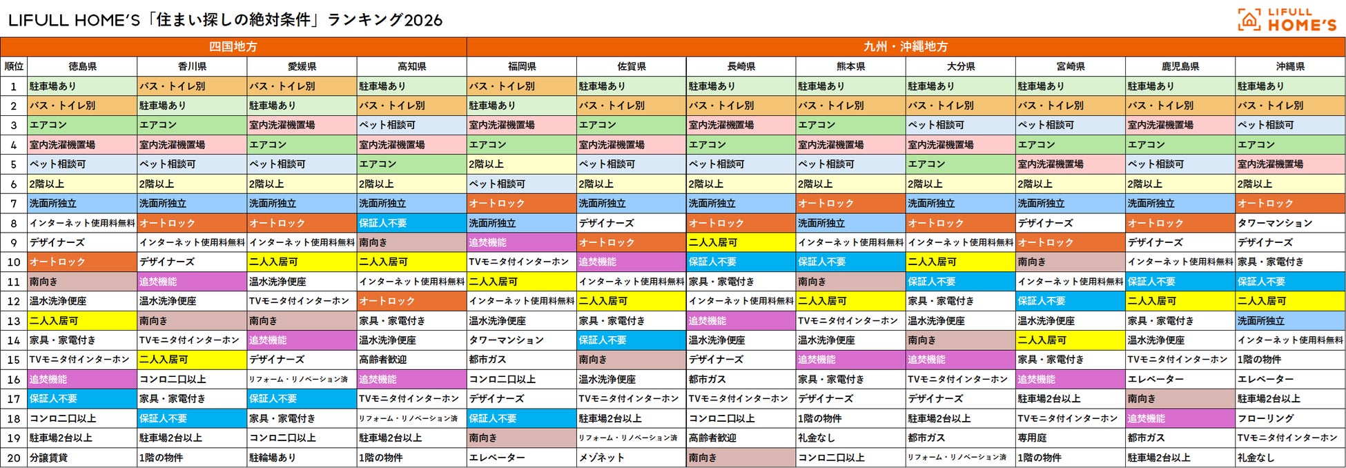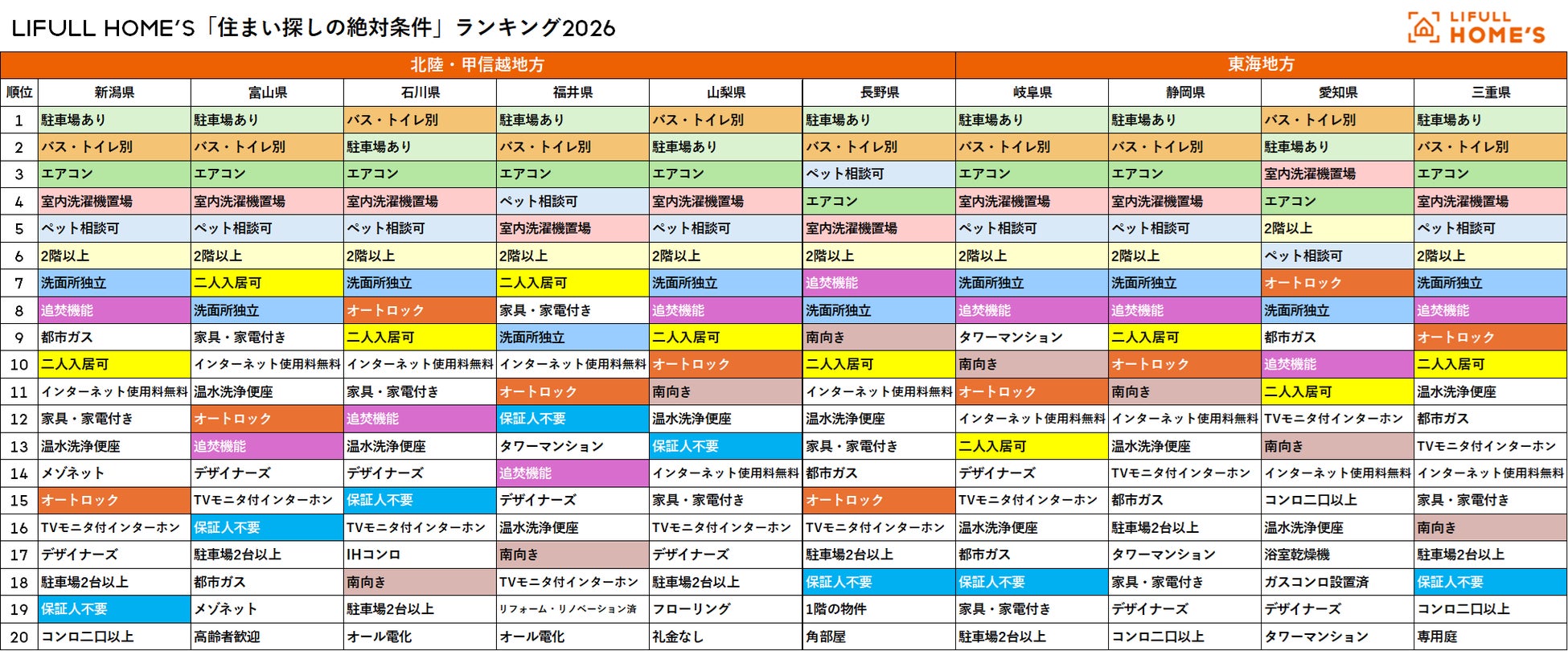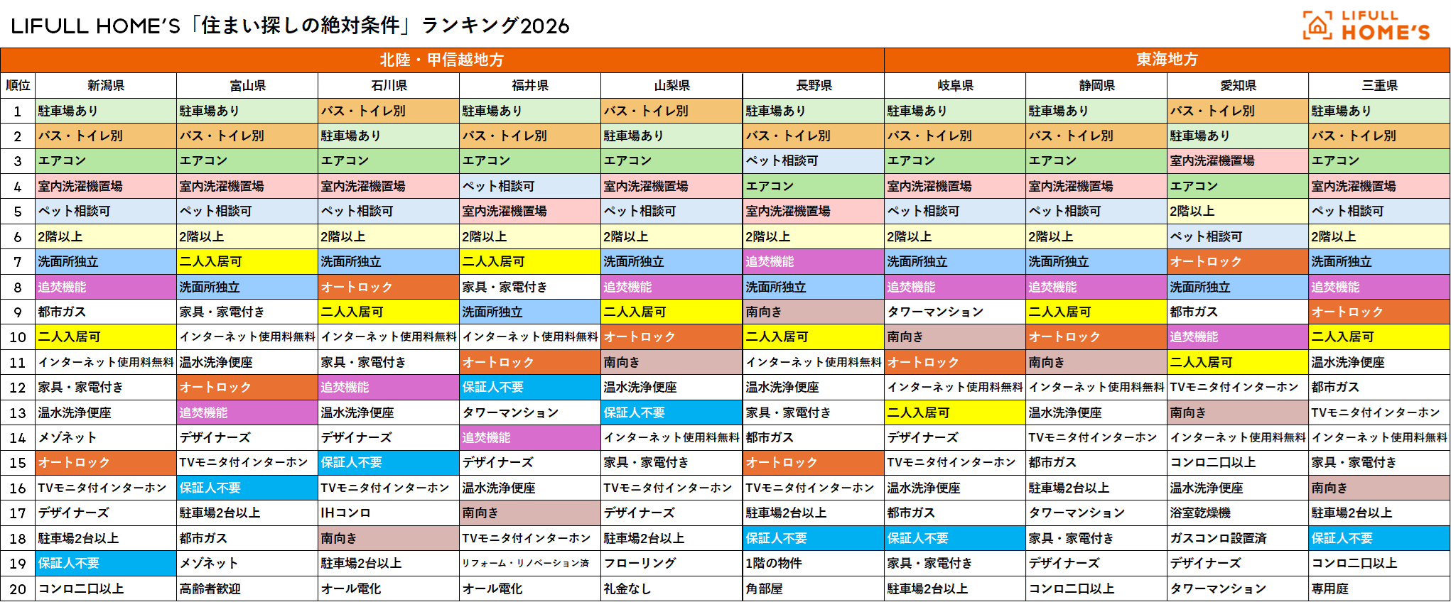 LIFULL HOME'S「住まい探しの絶対条件」総合ランキング2026