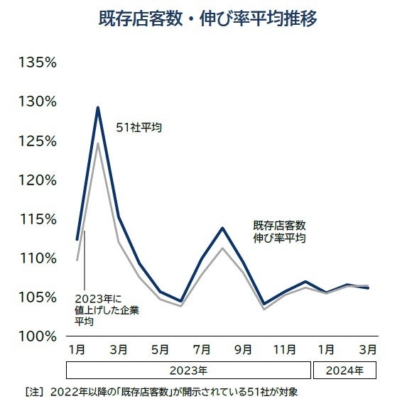 「値上げ」による集客への影響は限定的 既存店の客数平均、前年同月比増が続く