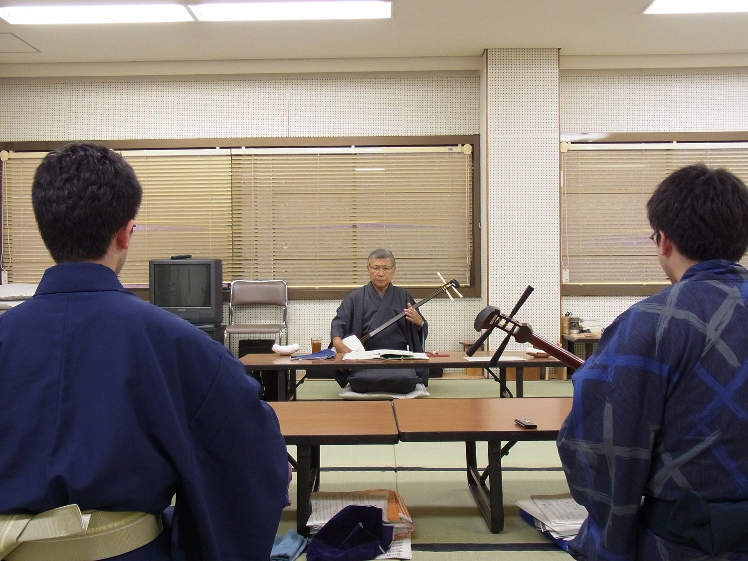 国立劇場養成所の研修では、受講料は無料です。テキストや研修に必要な楽器や小道具類もすべて国立劇場養成所が用意いたします。