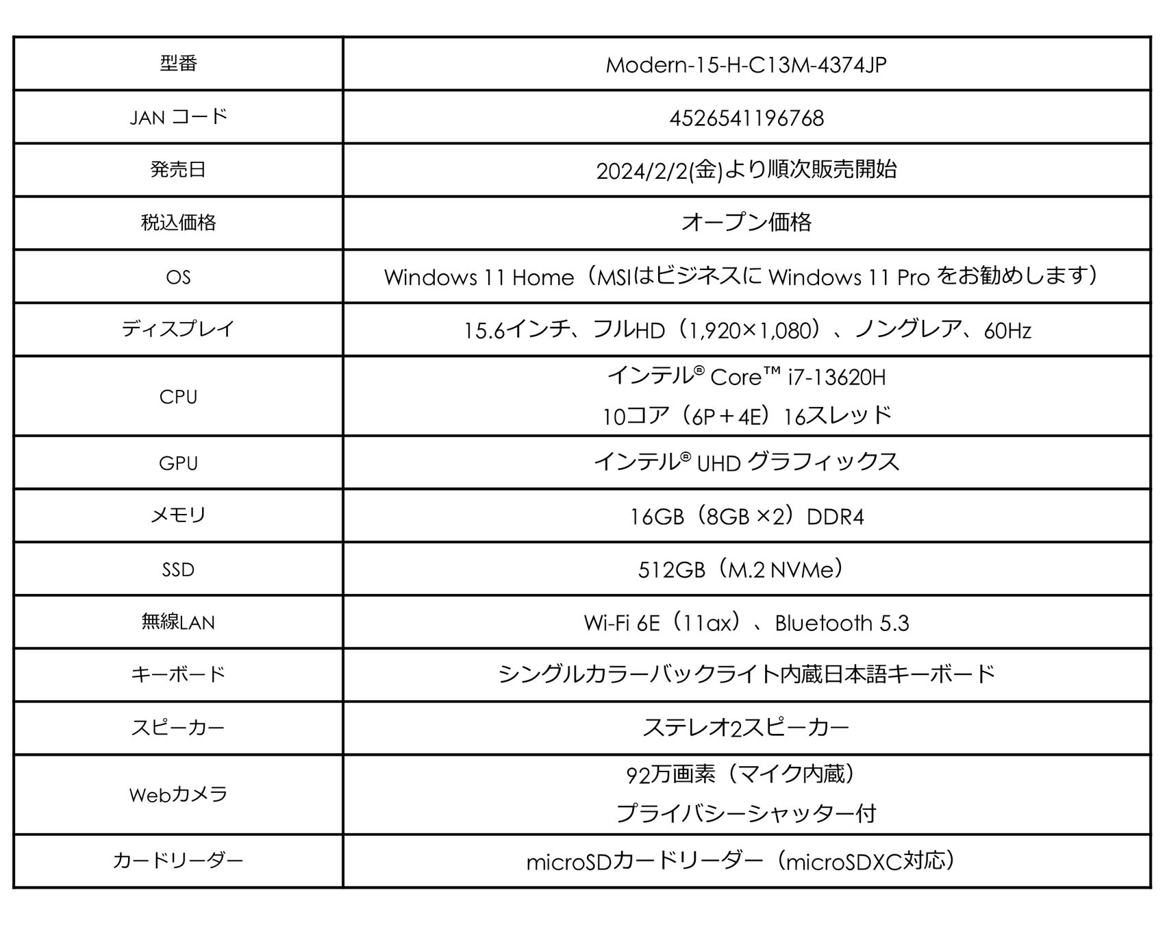 https://jp.msi.com/Business-Productivity/Modern-15-H-C13X