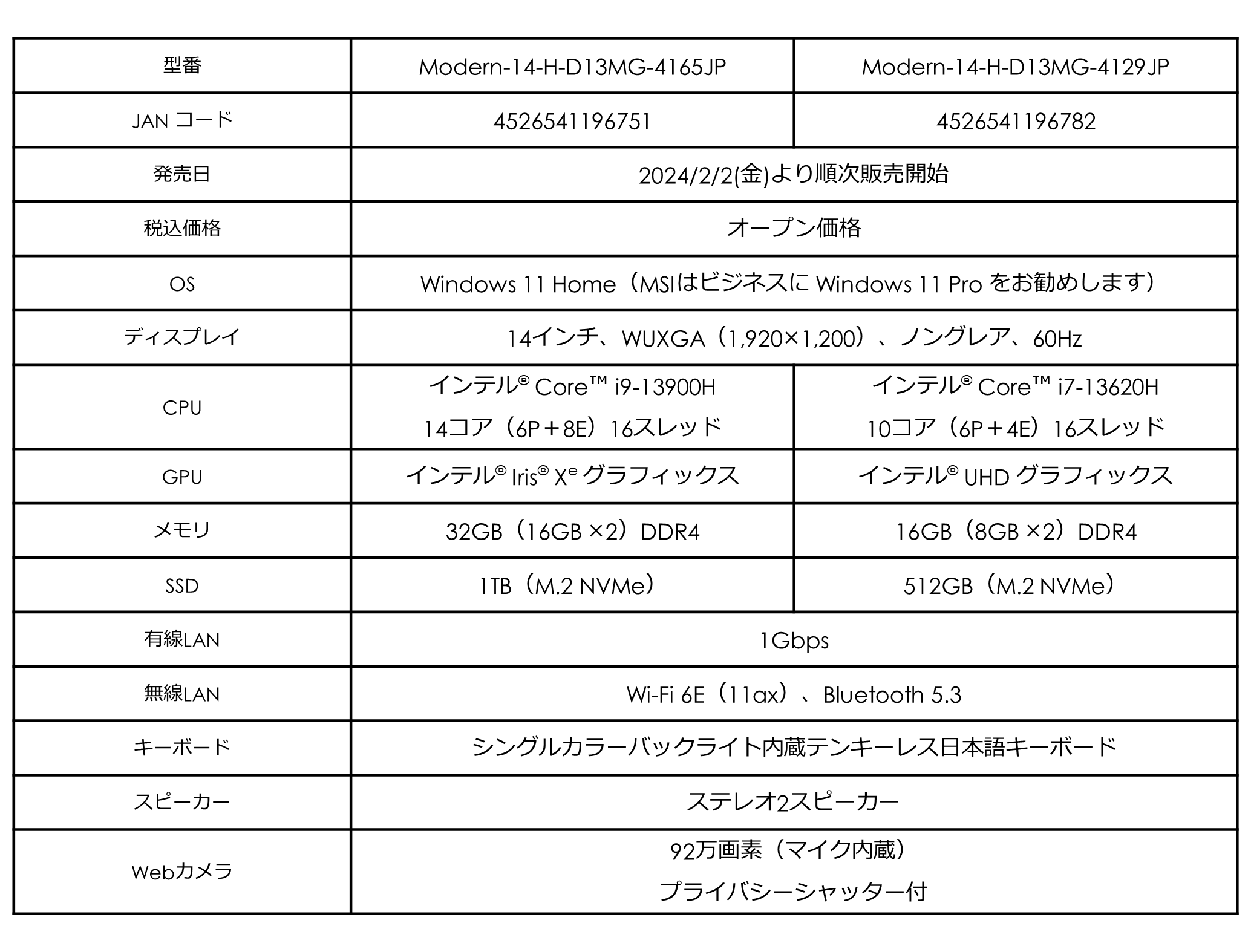 「“軽さ”ではなく“速さ”」をコンセプトにした新しいビジネスノートPCが誕生 14インチモデル「Modern 14 H D13M」、15.6インチモデル「Modern 15 H C13M」発売