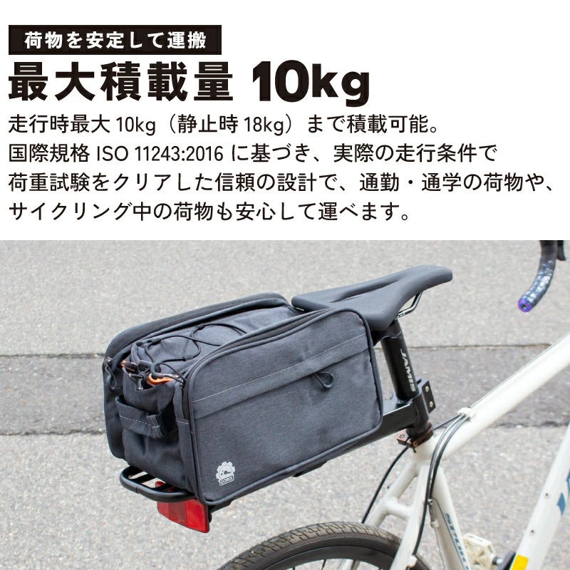 ・最大荷重 10kg を超えないようにしてください。 ・荷物の重心が偏らないようバランスよく積載して下さい。 ・人やペットの乗車には使用できません。 ・使用前に、すべてのボルトが確実に締まっていることを確認してください。 ・キャリパーやタイヤ等に干渉しないよう、取付後動作確認を行ってください。