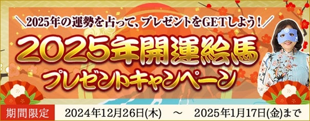 テレシスネットワーク株式会社(本社:東京都港区、代表取締役:鷹石惠充 https://www.telsys.co.jp/)は、2024年12月26日(木)より、月額公式サイト『水晶玉子 陰陽艶花占』にて「2025年開運絵馬プレゼントキャンペーン」を公開いたしました。