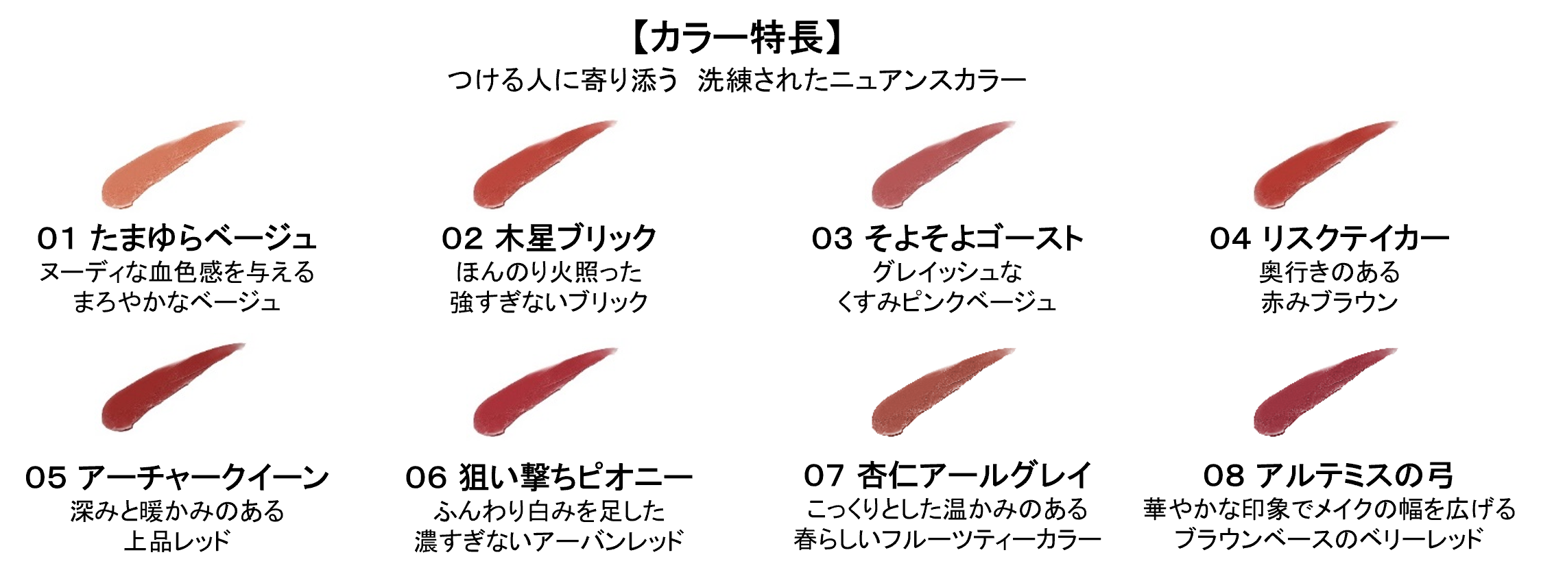 新色2色 全8色 各¥1,800(税込¥1,980)