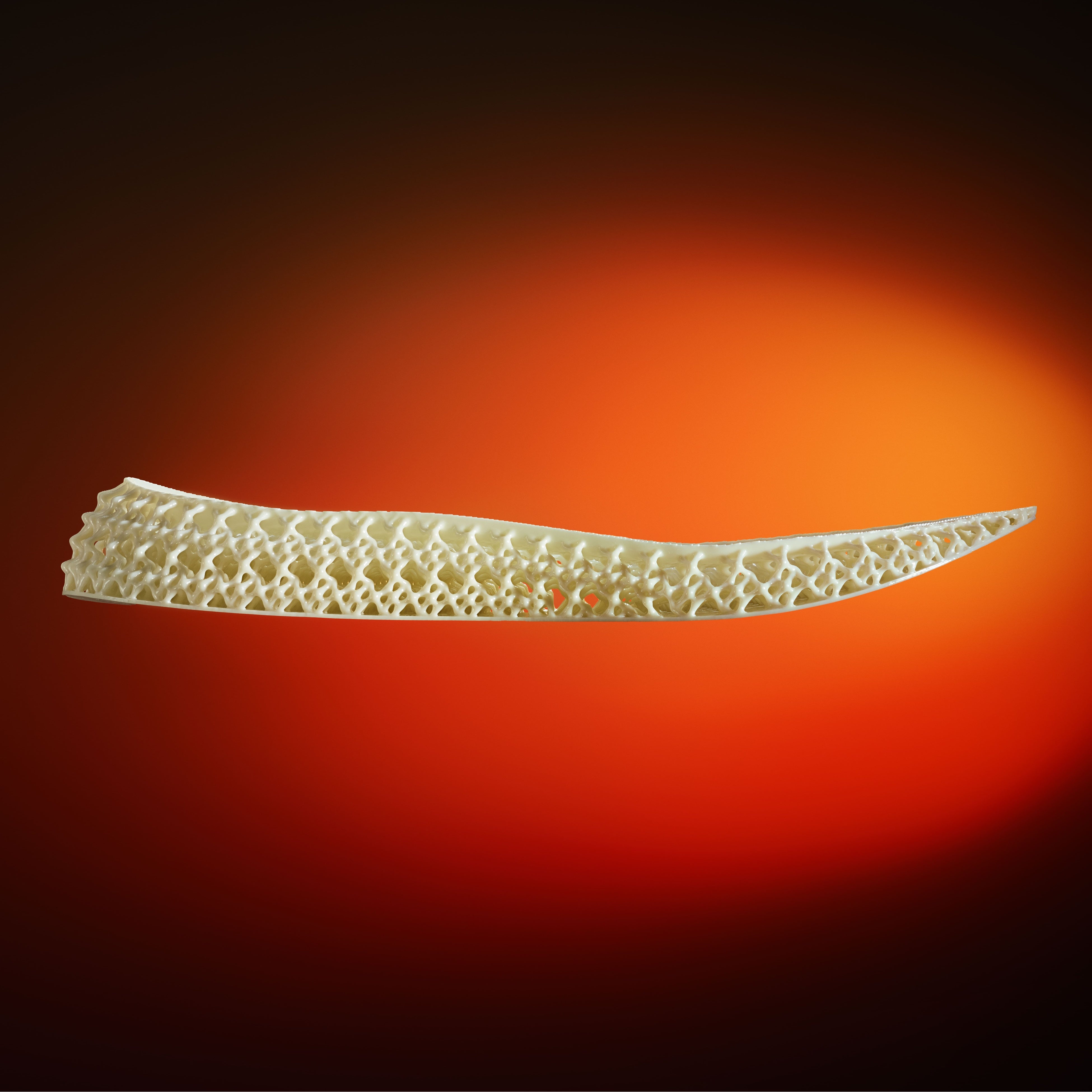 アディダス独自の3Dプリント技術を融合させたミッドソール。着地時にブレーキがかかる力を抑え、前進する力に転換するテクノロジー。500万パターンもの格子構造の中から選び抜かれた蝶ネクタイ(ボウタイ)の形をした「FWD CELL(フォワードセル)」と呼ばれるひとつひとつの格子が、垂直方向の衝撃に対して前方に押し出すような反発を生み出すような特別な構造となっています。