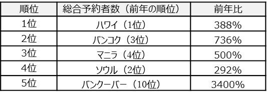 国内旅行全体では前年同期比126%と、緊急事態宣言が発出していた昨年と比較し好転はしているものの、コロナ以前に比べ回復にまでは至っておりません。ランキングに入った旅行先に大きな変化はございませんが、順位はテーマパークが目的と考えられる地域が昨年から順位を上げております。ランキング1位の沖縄県のご予約の内訳としては、本島滞在予約が減少した一方で、宮古島、石垣島など離島は前年を超える数値となっており、さらに、選ばれるホテルも高級ホテルが好まれる傾向になっていることから今年はよりリゾート感ある滞在、ホテルライフを求める需要が多いと推察されます。昨年よりランキングを大きく伸ばした大阪府は、「ユニバーサル・スタジオ・ジャパン」を主目的とされたお客様も多く、「スーパー・ニンテンドー・ワールド™」をはじめとする豊富なアトラクションと、「ユニバーサル・クール・ジャパン2022」として数々の人気作品とコラボした企画など、例年以上に注目されております。関西圏ではバスツアーの需要も高く、7年に1度の盛儀「善光寺」の前立本尊御開帳のコースが人気です。5位には長崎県がランクインしております。今年30周年を迎えた「ハウステンボス」を絡めたツアーでのお申込みも多く、ハウステンボス直営ホテルの予約数が前年比906%と、滞在時間も伸びる傾向が見られます。
