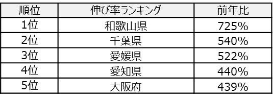 伸び率順では、和歌山県が最も高く前年725%という数値となりました。県内有数の観光地「アドベンチャーワールド」には2020年11月、ジャイアントパンダの楓浜が誕生し一般公開されており、今月よりいよいよ独り立ちした姿を見ることができます。2位には千葉県がランクインしており、入場者数の制限が緩和された「ディズニーリゾート」の需要回復とみられます。かぞく旅行が多いGWならではの動きとなっております。
