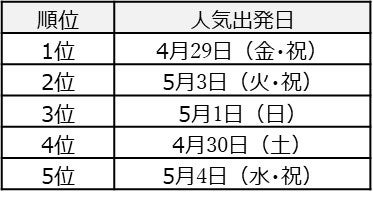 混雑のピークはGW初日の4月29日、Uターンのピークは5月5日、5月8日となっております。