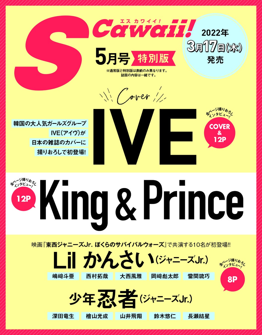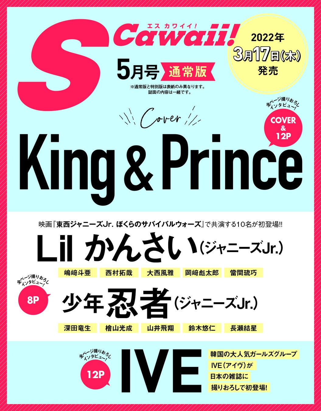 ★情報解禁★【通常版】のカバーに King & Prince、【特別版】のカバーに韓国のガールズグループ IVE が登場! 『S Cawaii! 5月号』は3月17日発売!