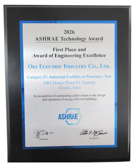 OKI、「本庄工場H1棟」が米国2026 ASHRAE Technology Awardの最優秀賞を受賞