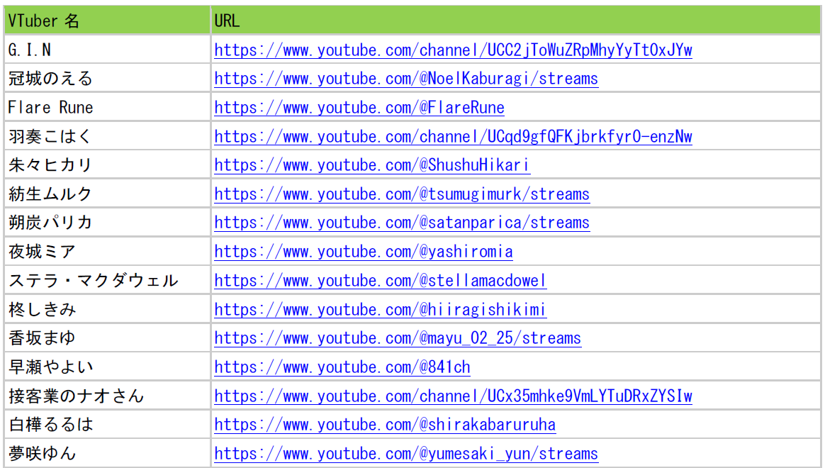 ※配信および配信スケジュールは、各VTuberの配信ページよりご覧いただけます