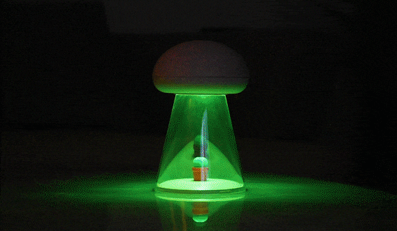 子ども向けのナイトライトとして、可愛いキノコの形になっており、透明グローブの中には小さな鉢植え植物のアクセサリが装飾してあります。
