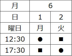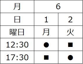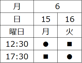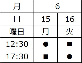 ■ 6/1(月)~6/2(火)・6/15(月)~6/16(火)