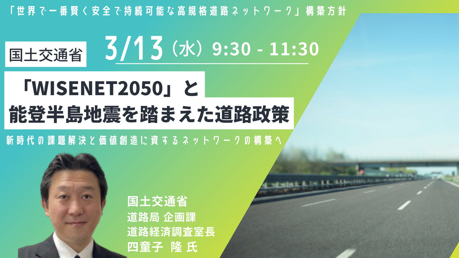 【JPIセミナー】国土交通省「”WISENET2050”と能登半島地震を踏まえた道路政策」3月13日(水)開催