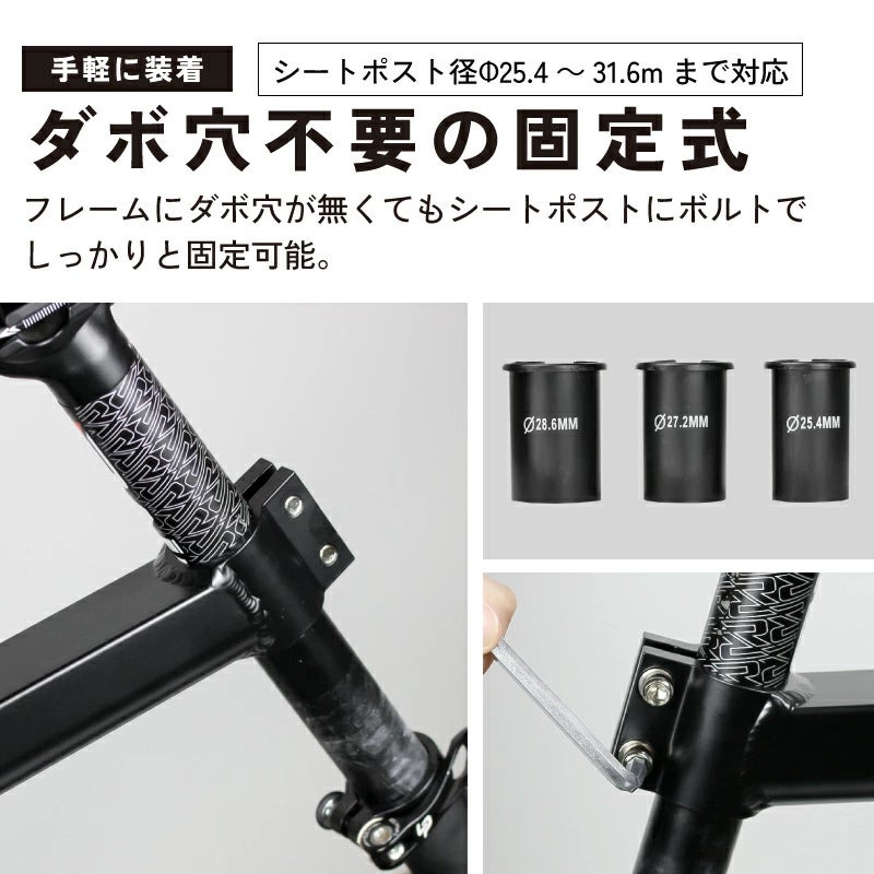 ●ダボ穴不要:シートポスト固定で多様な自転車に装着可能