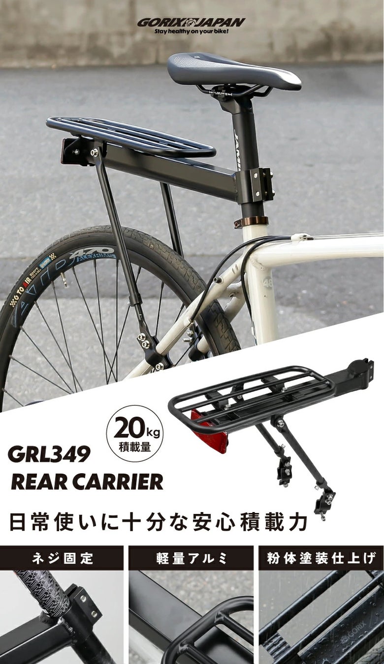 【新商品】【安定感重視ならコレ!!】自転車パーツブランド「GORIX」から、シートポスト取付リアキャリア(GRL349)が新発売!!
