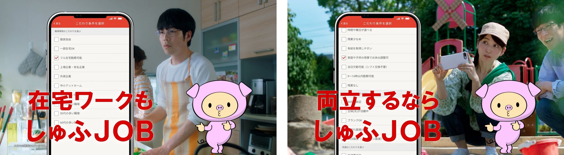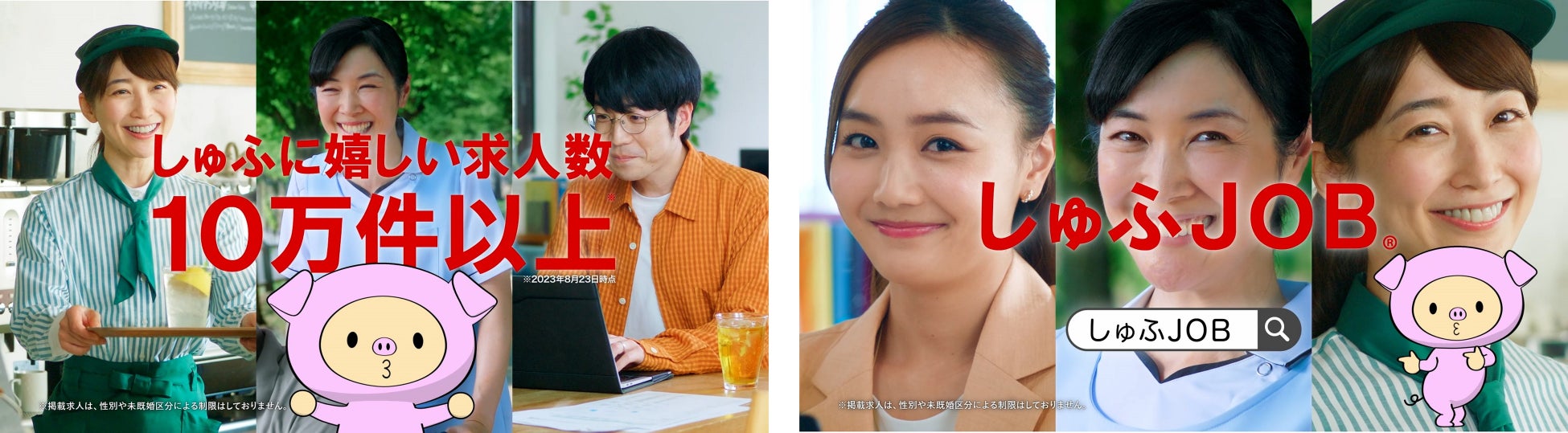 今回のCMでは、「短時間で働きたい」「家近がいいな」「家族の時間を増やしたい」「家で仕事がしたい」「私にできるかな」と悩むしゅふたちに、公式キャラクターの”ブーコ部長”が『しゅふJOB』を提案。10万件以上の求人から、希望に合った求人を見つけて、生き生きと働き始める様子が描かれています。