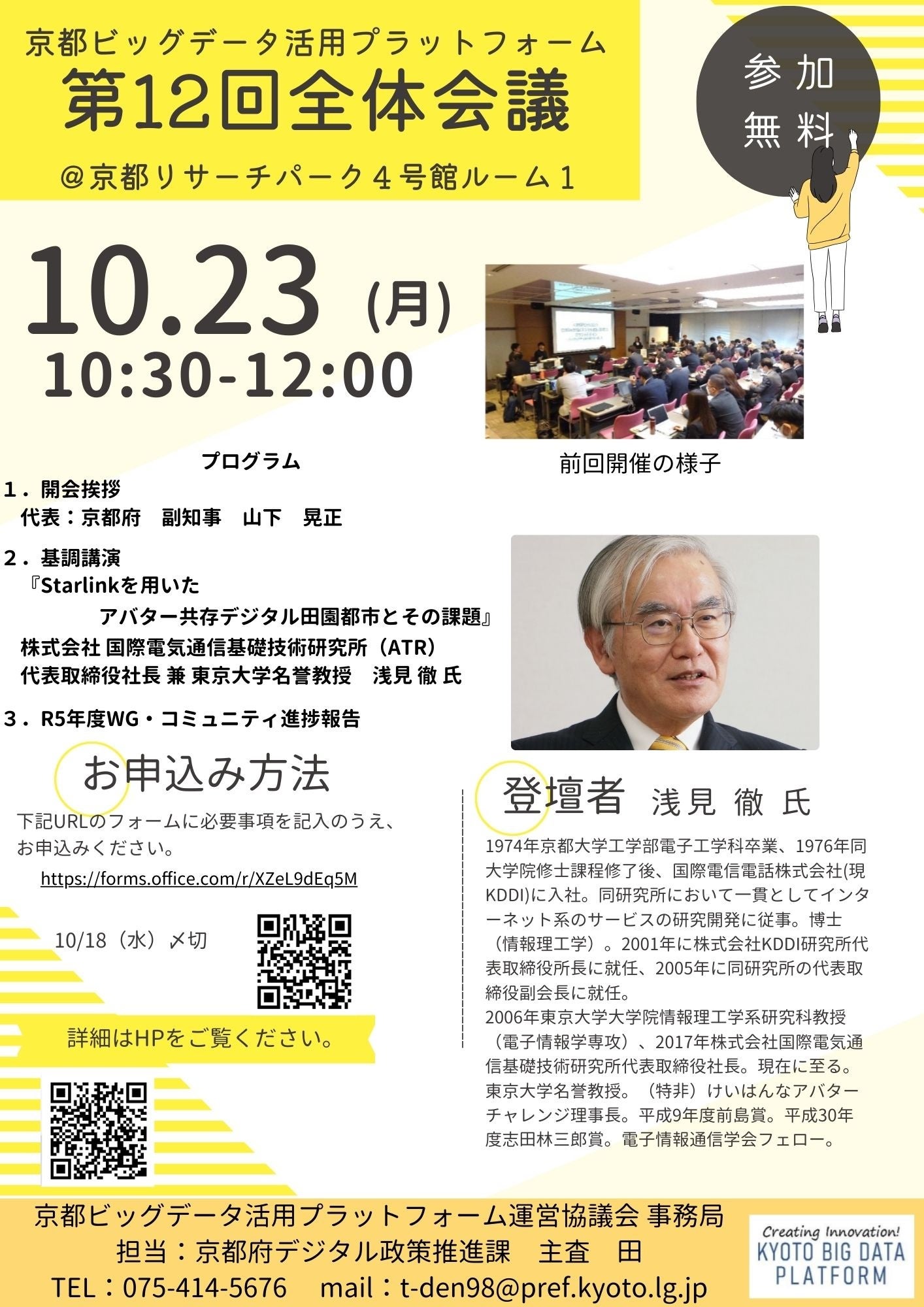 【10/23(月)】株式会社国際電気通信基礎技術研究所(ATR)浅見社長もご登壇する「第12回京都ビッグデータ活用プラットフォーム全体会議~アバター共存のデジタル田園都市を考える~」を開催【参加無料】