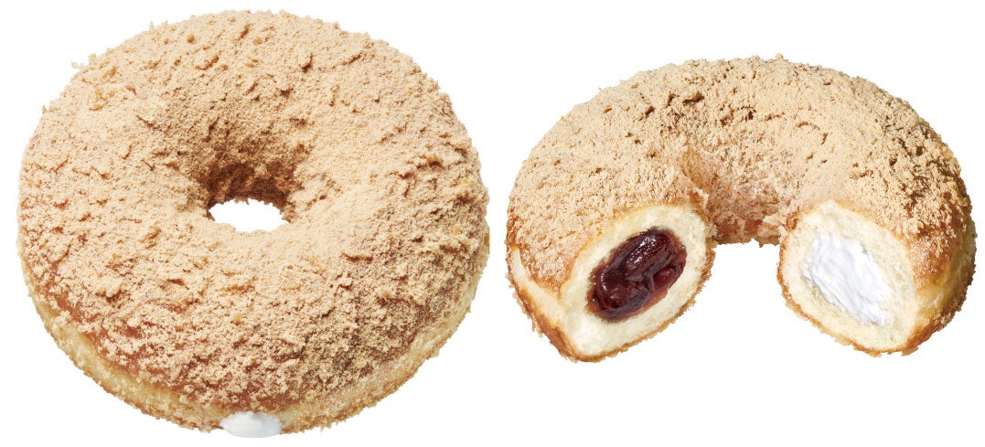 噛みごたえがありもっちりとした食感の生地に、北海道産あずきあんとホイップクリームの2種類を入れて、きなこシュガーで仕上げました。