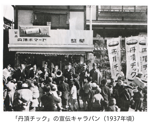 整髪料としてチックが初めて日本に輸入されたのは1902年頃ですが、製造技術などの課題から国産の優良品が現れず、当時でも海外製品が市場の大部分を占有していました。そうした参入が難しく思える市場環境にあって、西村新八郎は「夏季の変質に悩まされない植物性チック開発」に着眼し、日本初の国産植物性チックとして1933年「丹頂チック」を発売しました。