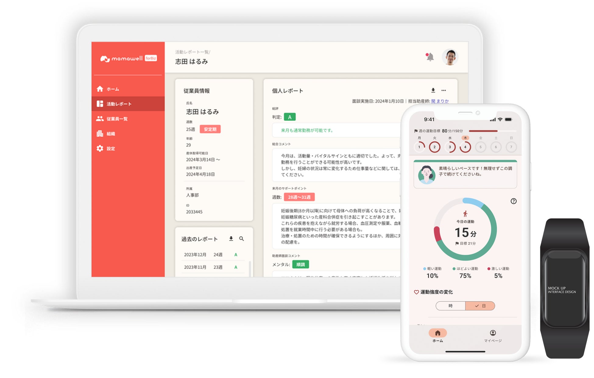 MamaWellは、妊婦が安心して働き続けられる環境づくりを支援。ヘルスデータの活用とパーソナル助産師による伴走型健康管理サポートで、妊婦の健康管理と就労継続の両立を実現します。