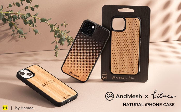 スマートフォングッズの商品開発やスマホアクセサリーブランド「iFace」の展開、及び通販サイトを運営するHamee(ハミィ)株式会社(本社:神奈川県小田原市、代表取締役社長:水島育大、証券コード:東証一部 3134)は、個性的なデザインが人気のスマホケースブランド「AndMesh(アンドメッシュ)」と唯一無二のプロダクトづくりにこだわる「KIBACOWORKS(キバコワークス)」がコラボレーションした「[iPhone13専用]AndMesh×kibaco ナチュラル iPhoneケース」を発売します。「AndMesh」公式サイトにて、2022年3月3日(木)より先行予約を開始、3月中旬より順次発売します。