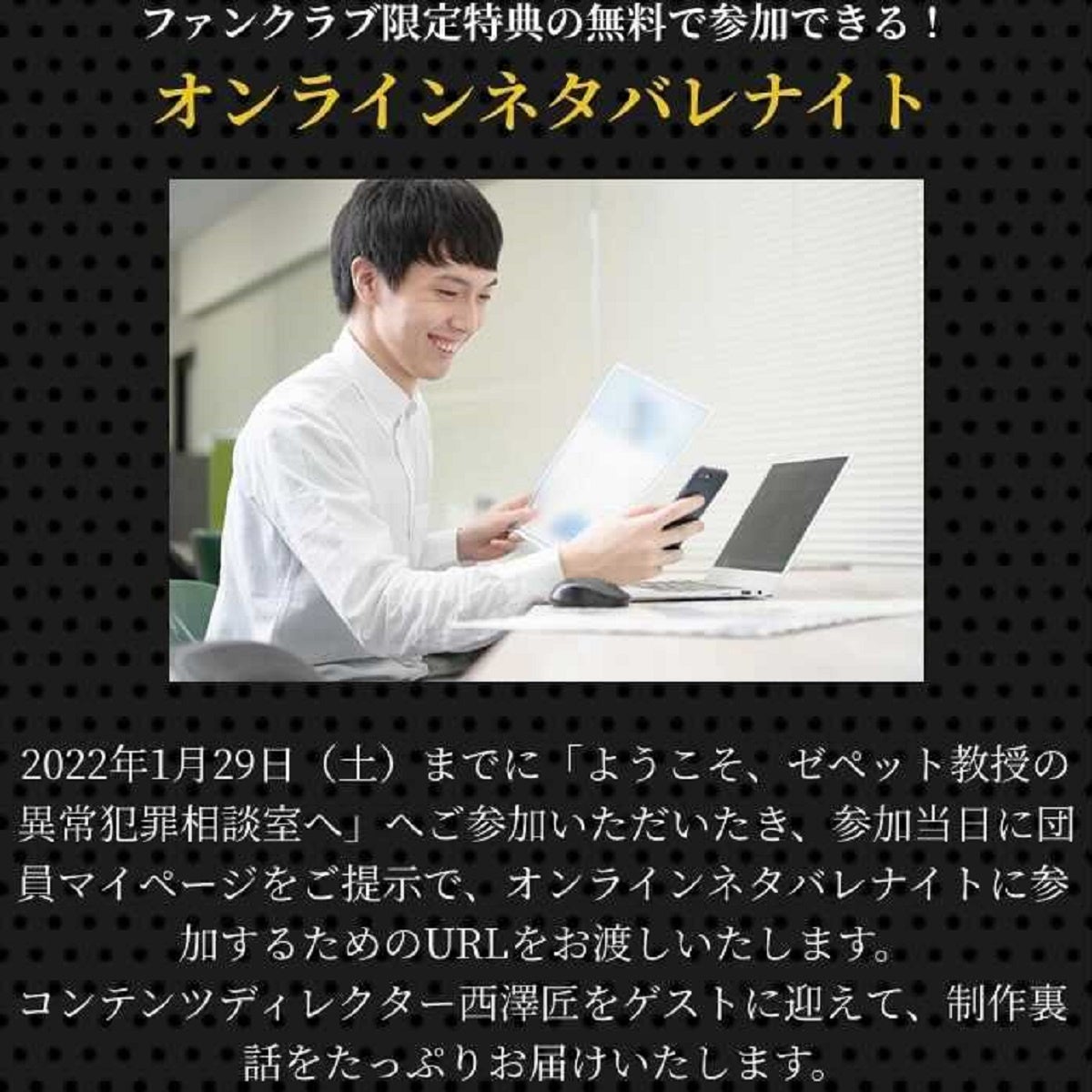 ・ファンクラブ限定特典の無料で参加できる「オンラインネタバレナイト」も2022年1月30日(日)に開催決定!